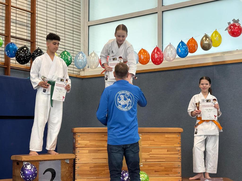 Cheftrainer Rainer Katteluhn war in seiner Eigenschaft als Präsident des Karate-Dachverbandes Nordrhein-Westfalen KDNW vor Ort und konnte bei der Siegerehrung persönlich den Pokal überreichen.